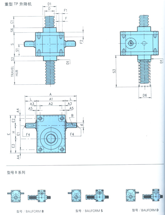 TP系列丝杆升降机型号有:TP183,TP204,TP306,TP407,TP559,TP7010,TP80101,TP9010;